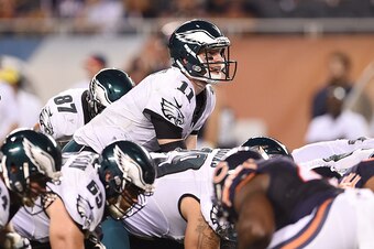 That's what Eagles head coach Doug Pederson said (per NFL.com writer Connor Orr) after Carson Wentz completed 21 of 34 passes for 191 yards and a touchdown against the Bears on Monday night. As the stats would indicate, Pederson's game plan for his rookie quarterback was fairly conservative, especially early on—a lot of quick throws to the flats—but Wentz also proved that he can stand in the pocket, take huge hits and make "wow" throws. He also proved that he might want to go out of bounds a little earlier at times, but that's a matter of development.