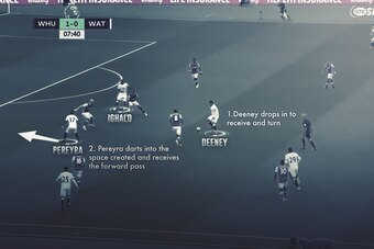 Against West Ham, midfield runners consistently flooded the penalty box and worked off Ighalo and Deeney’s hold-up play. Pereyra and Capoue have both been allowed forward at the same time, meaning Watford are at times piling between four and five players into the box for attacks.