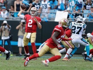 That's not a great stat line and while the stats don't lie, the 75-yard touchdown he threw to Vance McDonald had more to do with WR Quinton Patton's downfield block on Panthers MLB Luke Kuechly than Gabbert making a nice play down the field.