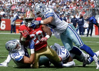 The 49ers gained 106 yards on 29 carries. That's an average of just 3.7 yards per carry. This unit had not been bad over the first three weeks of the season, but it wasn't exactly good, either. Sunday's performance was good. Dallas shut down the 49ers on first downs, and that led to the Cowboys forcingĀ Gabbert to beat them.