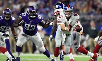 Mike Zimmer was forced to play two inexperienced tackles against a Giants front that gets after it. Could you tell? Sam Bradford didn't take a sack the entire game.