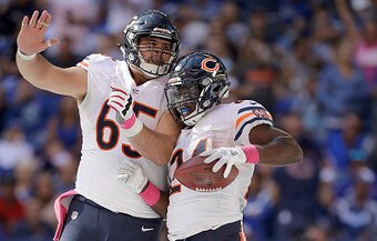 The Kansas State product seamlessly switched from tackle to center in the NFL. Now, he's opening up huge holes for Jordan Howard in the run game. Case in point: Whitehair's reach block in the second quarter on Zach Kerr sprung his running back for big yards.