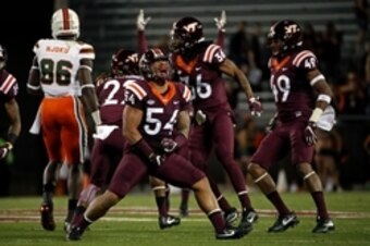 The Hokies gained 523 yards and sacked Miami quarterback Brad Kaaya eight times. According to ESPN.com's David Hale, they're just the third Power Five team in the last decade to have 500-plus yards and eight sacks in a conference game.
