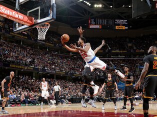 Porzingis swished a couple from so far downtown, Cleveland Indians outfielders said "Wow." (So did TNT analyst Chris Webber while calling the game.) He logged two nasty blocks, 16 points and seven boards.