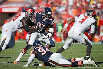 Want to know the extent of Tampa Bay's defensive dominance? Look no further than the first half of Week 10. Brent Grimes jumped a throw heading Alshon Jeffery's way. Minutes later, Chris Conte snatched a second Cutler throw and took it all the way back. Noah Spence (strip sack) and Robert Ayers (safety) made it a turnover party.