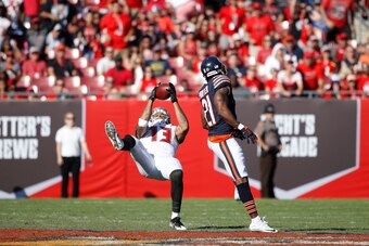 That effort afforded Jameis Winston a little leeway to A) cover up his own mistakes and B) run around like a chicken with its head cut off and somehow complete this pass to Mike Evans. Tampa Bay might not dominate like this in coming weeks, but the team will always be fun to watch.