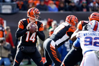 Offense: Two issues came back to haunt the Bengals once A.J. Green left. The first is obvious: Cincinnati hasn’t developed a receiver to produce opposite Green. That made Andy Dalton look like his second- or third-year self. Both of Dalton’s picks were wildly off-target; this offense might not be able to function without Green to reel those kinds of balls in.