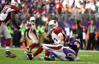 Defense: Mike Zimmer went against his own instincts, and it paid off in a big way. Minnesota’s defense is built to blitz, blitz and blitz again; remember how opposing quarterbacks from Weeks 1-5 didn’t have a prayer? Opponents figured that out, so Zimmer restrained his calls. The end result? Carson Palmer was forced to throw into tight windows and committed the costly error of throwing to Xavier Rhodes. His end-zone trip sealed a Vikings win.