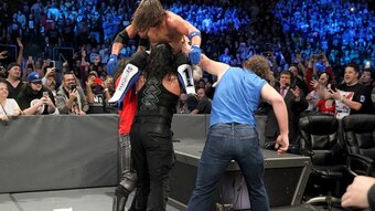 After being directly responsible for Dean Ambrose's elimination early on, AJ Styles was forced to pay the price when Ambrose resurfaced from the backstage area and aided Roman Reigns and Seth Rollins in their assault on the WWE world champion. As such, it was an unofficial Shield reunion.