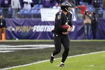 Anemic Stat Line of the Week: Ravens punter Sam Koch (pictured) ran backward 23 yards and out of the back of the end zone for a safety (with all of his teammates blatantly holding, knowing that the penalty wouldn't matter) to eat up the clock in the final seconds of a 19-14 Ravens victory against the Bengals. Koch's minus-23 yards count against the Ravens' total rushing yards. So while Kenneth Dixon and Terrance West combined for 97 yards on 26 carries —a respectable 3.7 yards per rush—the Ravens ended up with just 92 rushing yards and 3.1 yards per carry.