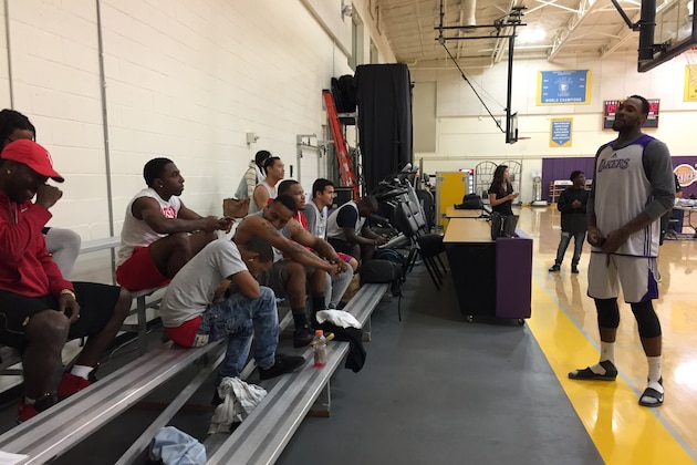 Lakers forward Tarik Black addresses the group. The youths half-jokingly ask for the Mercedes-Benz key dangling from Black's hand. He indulges them with idle hoops chitchat in a language they know well.