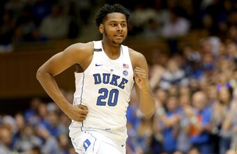 The addition of Frank Jackson and emergence of Luke Kennard has made it tough for Allen to find a rhythm. He's only shooting 35.7 percent and 32.2 percent from three. But his jumper isn't a major issue; He's still hitting 2.3 triples per game while becoming Duke's top playmaker, averaging 4.1 assists.