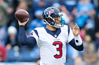 Texans starter Tom Savage (pictured), playing in a meaningless game to get some reps and build off a pair of quasi-acceptable performances against the Jaguars and Bengals, suffered a concussion on a quarterback sneak at the start of the second quarter against the Titans. Brock Osweiler relieved Savage, and after a typically Osweilerian start (a sack on 4th-and-6, a one-yard pass on 3rd-and-18 from the Texans' 2-yard line), he completed enough catch-and-run plays to DeAndre Hopkins to lead a handful of scoring drives and keep a 24-17 loss to the Titans respectably close.