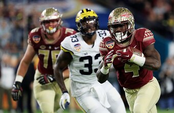 Though Michigan did not play with Jabrill Peppers, their Heisman Trophy finalist linebacker, since he was limited with a hamstring issue, Cook was able to record 145 rushing yards and 62 receiving yards to carry the Seminoles to a 33-32 victory. For reference, Florida State freshman quarterback Deondre Francoisย completed just nine of 27 passes against that lockdown defense.