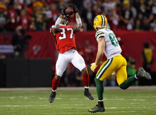 The Falcons defense came of age against the Packers. Ricardo Allen (pictured) intercepted an Aaron Rodgers pass before halftime to set up a Falcons touchdown. Ra'Shede Hageman clogged the middle of the field and swatted Rodgers' feet from under him for a sack. Jalen Collins stripped the ball from Aaron Ripkowski, taking away a Packers scoring opportunity. Deion Jones recorded five solo tackles and provided underneath coverage and some up-the-middle pass rush on blitzes.