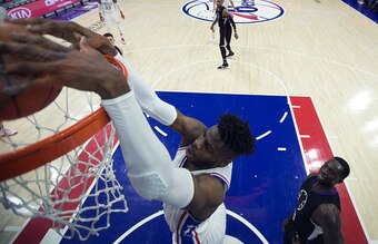 On the defensive end, Noel's done just that. Among players who've faced at least four shots per contest at the rim, he's posted the third-lowest opponent field-goal percentage (42.5 percent), behind only Kristaps Porzingis and fellow Sixers big man Joel Embiid.