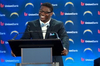 The fifth overall draft pick in 2001 by the Chargers, Tomlinson started his career with eight straight seasons with at least 1,000 rushing yards. He led the NFL in rushing touchdowns three times (2004, 2006, 2007), rushing yards twice (2006, 2007) and yards from scrimmage once (2003).