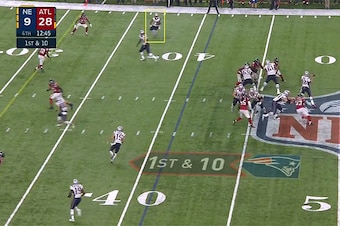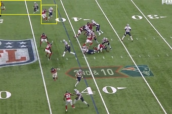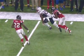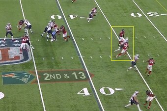 Julian Edelman's crazy catch with 2:28 left in regulation is the play everyone will discuss for years, but that was a smart coverage concept—the Falcons were in man coverage against New England's 3-by-1 set, and Alford carried Edelman through his inside route with good position and route adjustment. Alford got his hands on Brady's pass but let it go, setting the stage for Edelman's heroics.