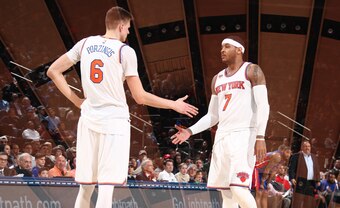 In that game, New York got at least 20 points from Carmelo Anthony, Kristaps Porzingis and Derrick Rose—something that had only happened five previous times this year, per ESPN Stats & Info. Including that Monday win, the Knicks' record in such contests is an uninspiring 2-4.