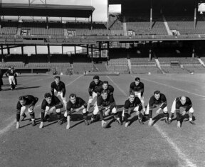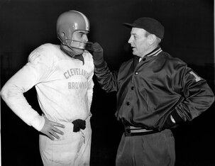 The only force that could stop these battle-hardened Eagles was another team with its own military ties. While the Eagles were flying bombing missions and storming beaches, a brilliant young coach was keeping morale high by assembling football teams at stateside military bases. His name was Paul Brown. You'll meet him and his namesake team a little later in the countdown.