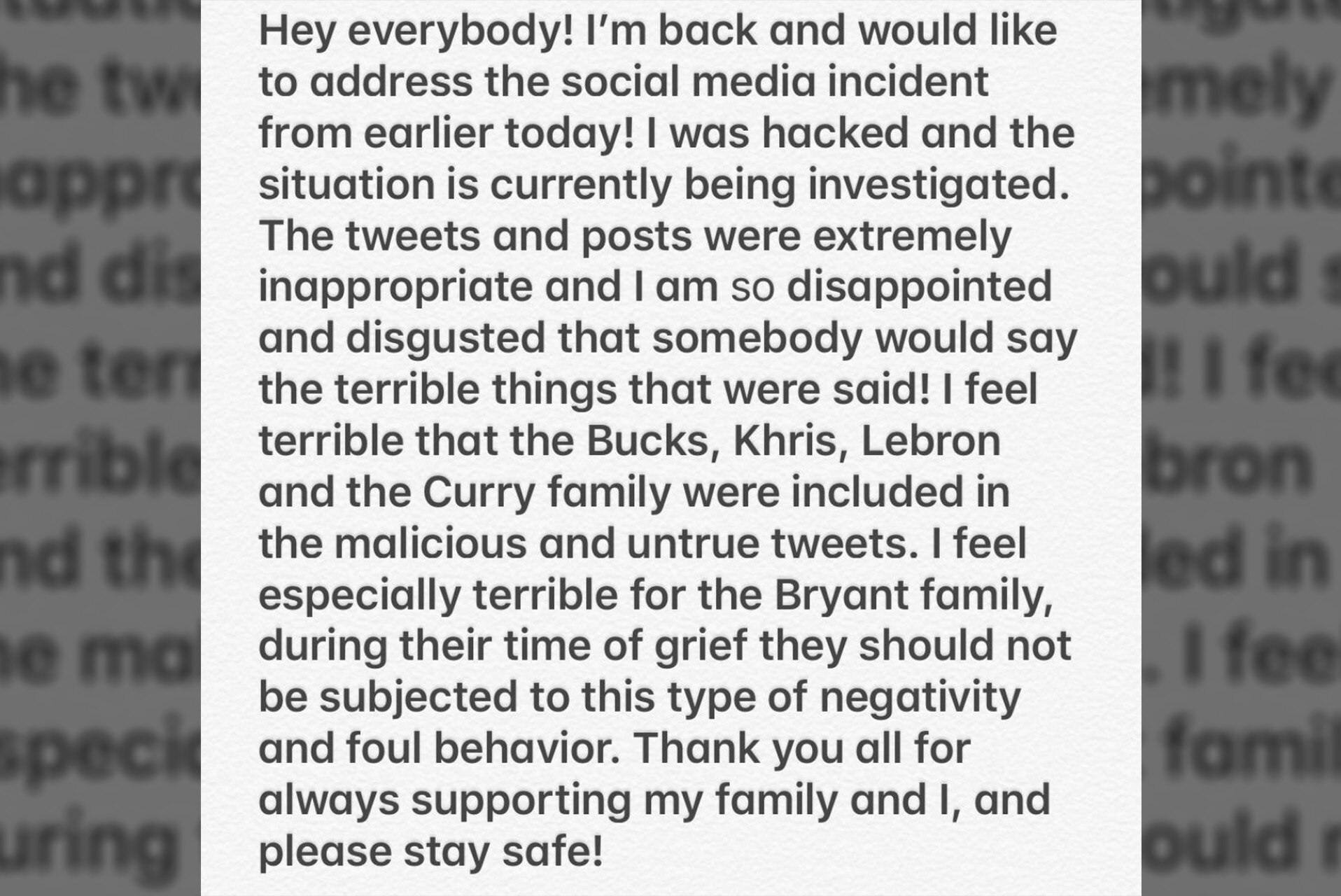 Sports Illustrated provided James' comments on the incident: