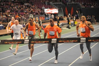 Gault (shown winning a race in 2010) may no longer be one of the fastest humans on earth, but he is clearly the fastest man who qualifies for the AARP.