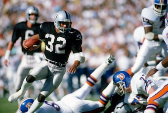 Marcus Allen won the Heisman Trophy after a triumphant 2,400-yard season at USC, was selected 10th overall by the Raiders in the 1982 draft, scored 11 touchdowns as a rookie, helped the Raiders win a Super Bowl with 1,000 yards and one of the greatest runs in pro football history in his second season and led the league in rushing and scrimmage yards in his fourth season.