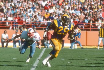 And despite needing sport goggles, Dickerson had the best vision of any back in any era. His ability to see a cutback lane, plant, square his shoulders and explode through a backside hole made him nearly impossible to defend, even though opponents always knew what was coming. Dickerson was every flavor of running back—bruiser, corner-turning speedster, halfback, fullback, third-down back and so on—rolled into one.