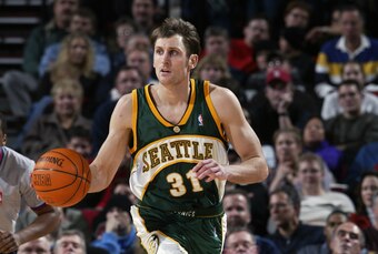 Brent Barry didn't earn any awards for his 2001-02 work with the Seattle SuperSonics. He didn't help propel the team to any playoff success, either. With him, Gary Payton and Rashard Lewis leading the charge, the 45-win Sonics dropped a decisive Game 5 to the San Antonio Spurs, who would lose to the Los Angeles Lakers in the next round.