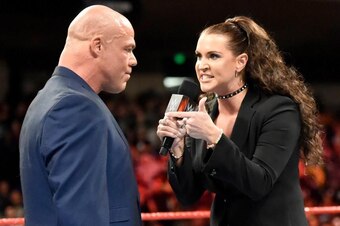 1 of 11With the Raw roster standing on the entrance ramp, general manager Kurt Angle apologized for allowing the invasion to happen last week. Stephanie McMahon stepped in early on in his speech to interrupt.