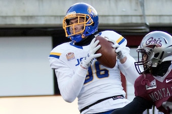 Goedert does present some question marks because he's still developing as a football player. He excelled on both the gridiron and hardwood before deciding to walk onto the Jackrabbits program.