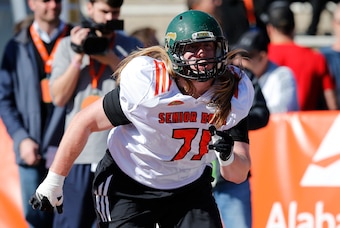 Granted, not many Division II defenders can stack up against the 6'5 ½", 299-pound blocker. Scouts didn't have to wait long to see Cappa do the same against other top prospects at the Senior Bowl, per Pro Football Focus' Ben Stockwell.