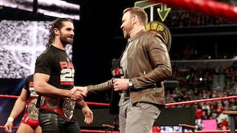 Cesaro and Sheamus interrupted, and the former tag team champs' insults lead to a fight in a hurry. During the scuffle, Rollins accidentally nailed his own partner with a flying knee.