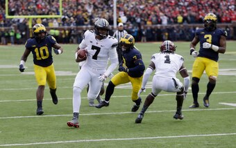 You never want to put too much pressure on a player who has limited reps, but Haskins has an exciting future. The 6'3", 214-pound signal-caller from Potomac, Maryland, can take off and run, but it's his throwing strength that is a sight to behold.