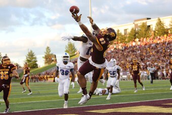 Richie James, Wide Receiver, Middle Tennessee State: A pint-sized (5'9"), super-productive slot receiver and Wildcat for the Blue Raiders, James caught 212 passes with 20 touchdowns in 2015-16 before suffering multiple injuries in 2017. The injuries are a concern for a 178-pounder, but James can be a slippery return man/slash player if he stays healthy.