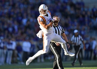 Go watch his game against Oklahoma State receiver James Washington, a second-round pick of the Pittsburgh Steelers. He battled all contest and held Washington to one of his least productive 2017 outings (four catches, 32 yards, no touchdowns).