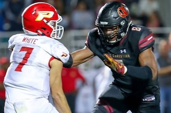 What made him an outcast as a middle-schooler now has him the nation's No. 1 overall recruit in the class of 2019, according to 247Sports. In October, the 6'5", 235-pound senior defensive end is expected to choose between Alabama, USC, Florida State, Oregon and LSU. "His upside is tremendous," says Charles Collins, his coach at Oaks Christian School in Westlake, California. He racked up 20 sacks and 99 tackles in 2017, including 70 solos and 28 tackles for loss to guide his team to a CIF Southern Section Division 2 crown.