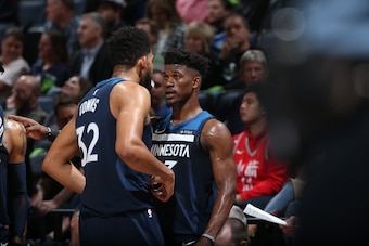 Citing Karl-Anthony Towns specifically, a source told the Chicago Sun-Times' Joe Cowley that Butler has grown "frustrated with the nonchalant attitudes of younger teammates." Butler is also "trying to figure out a way" for he and Kyrie Irving to join forces, per Cowley.