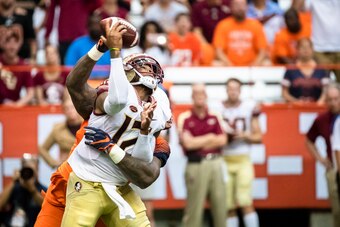Florida State used three different left tackles as its offensive line suffered all day. The Orange lived in Francois' face, and when the redshirt sophomore didn't get hit, he looked afraid we would be. It's clearly affected his pocket presence.