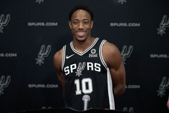 Look no further for evidence than San Antonio's projected starting five: Dejounte Murray, DeMar DeRozan, Rudy Gay, LaMarcus Aldridge and Pau Gasol. DeRozan, of all people, led this gaggle in three-point makes per 36 minutes with 1.2—a mark that came on 31.0 percent shooting and ranked 160th in the league, just behind...Dewayne Dedmon.
