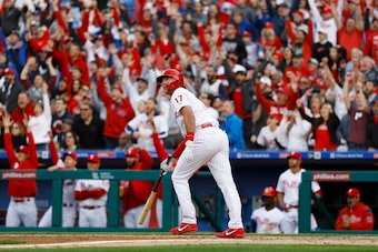Hoskins isn't the only returning member of the Phillies' 2018 lineup—which scored a modest 4.2 runs per game amid the team's 80-win season—who grabbed the spotlight on Opening Day. Odubel Herrera and Cesar Hernandez each pitched in RBI singles, and Maikel Franco drilled a long three-run home run.
