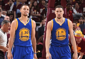 Curry was the NBA's unanimous MVP that season, averaging a league-high 30.1 points to go along with 5.4 rebounds, 6.7 assists and 2.1 steals per game. He shot 45.4 percent from three on 11.2 attempts per contest. Thompson was another of the league's best outside shooters, averaging 22.1 points on 42.5 percent from three.