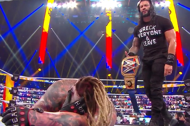 Roman Reigns made a shocking return Sunday night as SummerSlam was going off the air. And from the jump, it felt different—draped in a tight-fitting "Wreck Everyone & Leave" shirt and fully-bearded, he brutalized both Braun Strowman and Bray Wyatt's The Fiend.