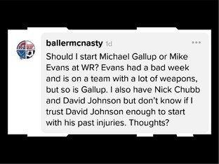 Jonnypro is dealing with injuries at wide receiver. "If [Chris] Godwin is out with a concussion, Stefon Diggs or Sterling Shepard?"