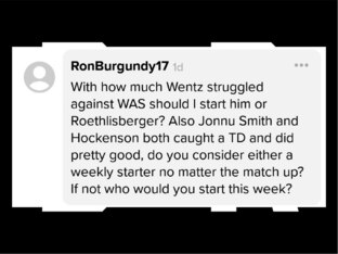 The Eagles should have at least some of those players back against the Rams. But even if Philadelphia was at full strength, Wentz would be a sit in Week 2. The Rams did a good job defensively against Dak Prescott in Week 1, limiting him to 266 passing yards and one score.