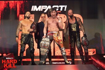 After the match, Eric Young appeared on the video screen, providing a distraction that allowed Rhino to enter the fray and join Young in a beatdown of Sabin and Storm. Backstage, Young and Doering teased punishing Chris Harris as the screen went static.