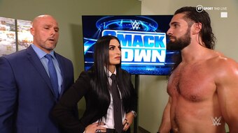 Elsewhere, Sonya Deville and Adam Pearce rocked out to Boogs playing Nakamura's theme until Seth Rollins interrupted and said he should be the next Superstar to challenge Roman Reigns for the Universal Championship. A suddenly serious Rollins said no one is more deserving of the opportunity than him, to which Deville and Pearce said they would take his request under advisement.