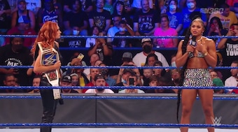 SmackDown women’s champion Becky Lynch made her way to the ring to address the events surrounding her return to WWE, including her appearance on last week’s show and the lack of “you deserve it” chants that accompanied her. After cutting a fairly disingenuous promo, Bianca Belair made her way to the ring.
