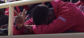 At first, we saw a Hoosier fan doing the surrender cobra. Seems innocent enough. But as the camera stayed on her, a video-bombing middle finger came into the frame from another person seconds before ESPN panned away.