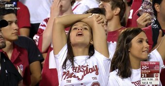 We won't show you the NSFW version of this one, but this gem of a fan moment came during the Indiana-Ohio State game in 2017. Shortly after the Buckeyes took a 27-21 third-quarter lead, ESPN's cameras panned to some IU fans.